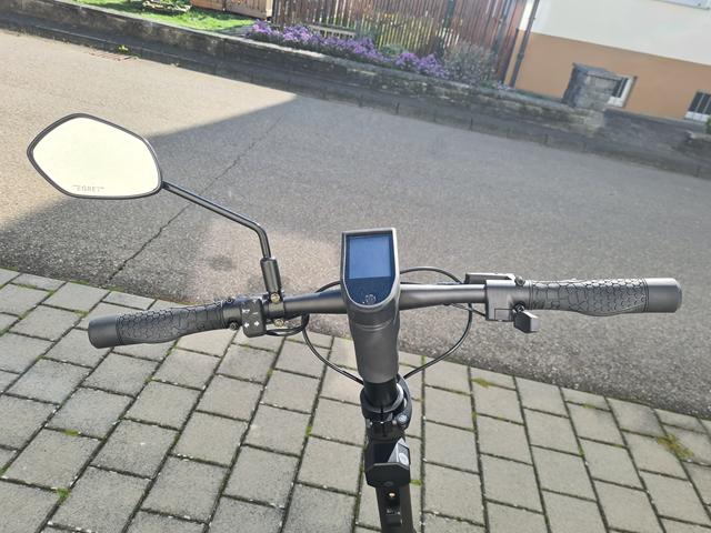 Dein Kommandozentrum mit Blinkern, Farbdisplay und Spiegel. Das Cockpit ist nicht nur funktional, sondern ein echtes Hightech-Highlight. Mit dem großen 3,5” TFT Farbdisplay hast du alle wichtigen Infos wie Geschwindigkeit, Akkustand und Fahrmodus immer im Blick – klar, stylisch und intuitiv ablesbar. Von hier aus steuerst du Blinker, Licht und Bremsen. Der Spiegel verleiht dir eine Rundum-Sicht, damit du in jeder Situation den Überblick behältst.