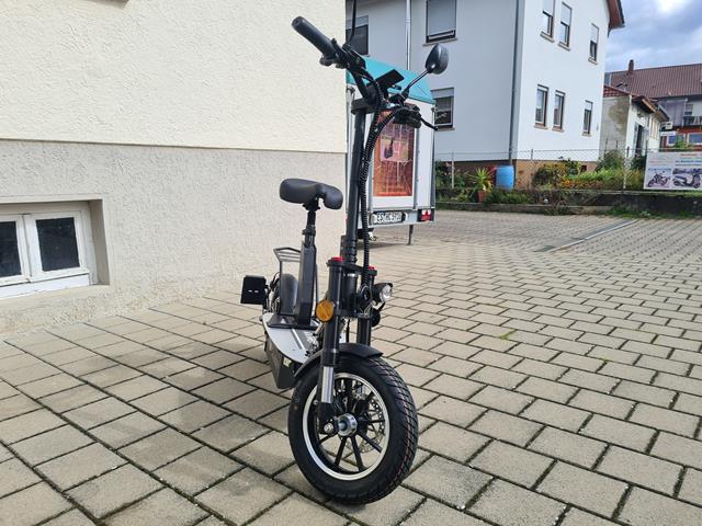 - Akkupack entnehmbar, Aufladung in Wohnung (mit Adapter) oder direkt am Roller