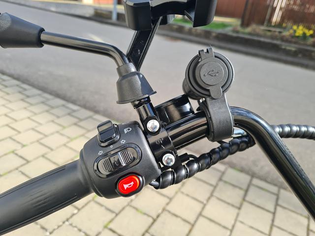 Dank der Handyhalterung am Lenker können Sie Ihr Smartphone bequem als Navigationsgerät nutzen, während der praktische USB-Anschluss es gleichzeitig auflädt. So bleibt man immer sicher auf Kurs.