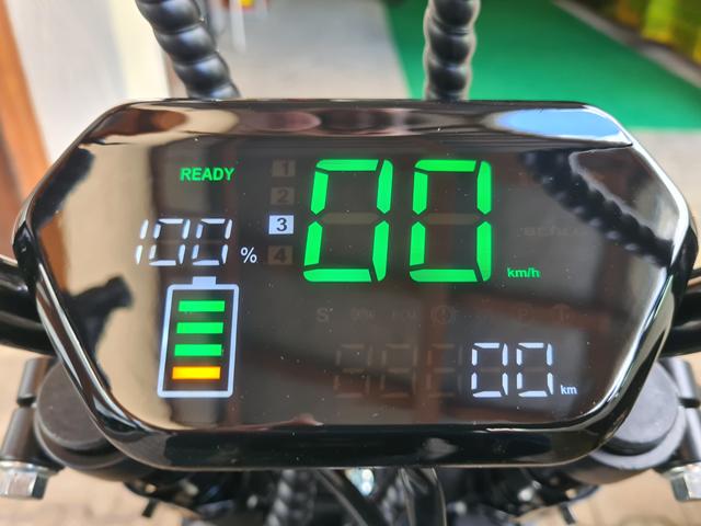 Für optimale Leistung ist der E-Chopper 45 mit einem kraftvollen 3000 Watt Motor ausgestattet, der auch bei voller Beladung mühelos die zulässige Höchstgeschwindigkeit von 45 km/h erreicht. Das übersichtliche digitale Farbdisplay liefert alle wichtigen Informationen auf einen Blick, von der Geschwindigkeit über die Akkureichweite bis hin zu den Geschwindigkeitsstufen.
