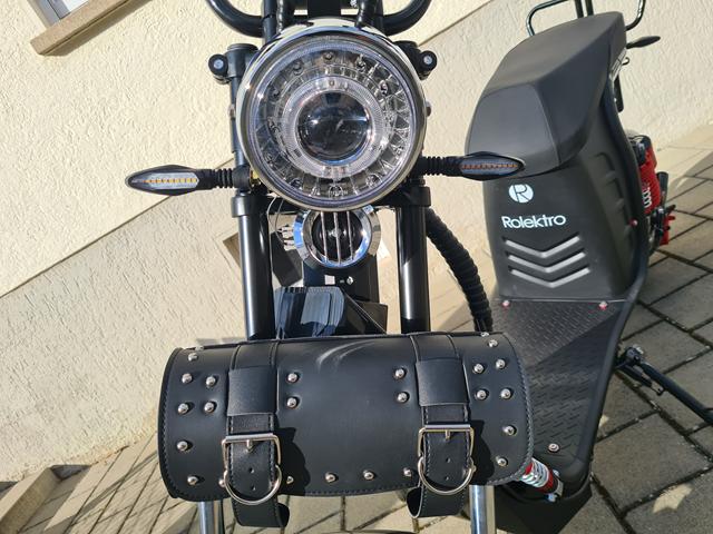 Der Rolektro E-Chopper 45 ist ein Roller für echte Individualisten – je nach Akkuausstattung nicht nur für kurze Strecken in der City sondern gerne auch mal zu zweit an den Baggersee oder zum Sonntagstreff! Die Basisausstattung mit Handyhalter, USB-Steckdose, Lenkertasche und Stauraum unter dem Sitz lässt in dieser Klasse kaum Wünsche offen.